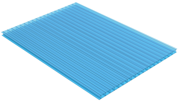高玛蓝盾 PC阳光板(中空板)采用特级聚碳酸酯原料并共挤高浓度UV生产而成。具有质轻、透光、耐冲击、热隔离、阻燃、耐用等特点。